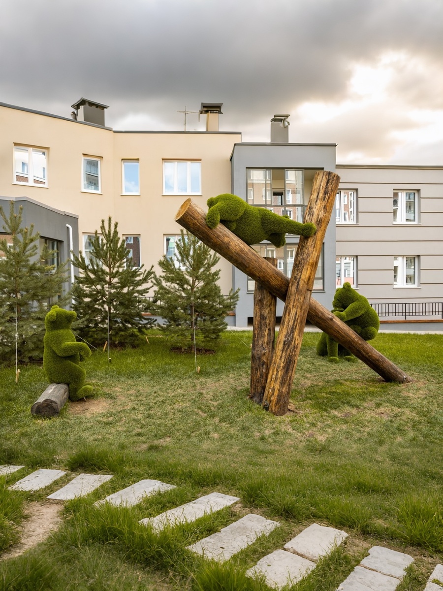 ✔ озеленение Формально — всё есть, но фактически — двор не живёт. Через 2–3 года: - элементы устаревают