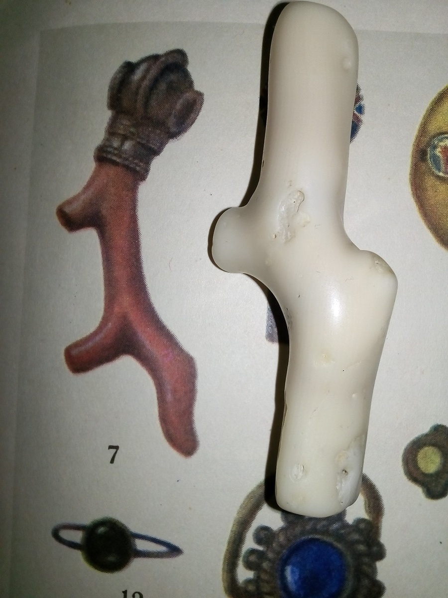 Мой коралл на фоне книжной иллюстрации ( коралловая подвеска из раскопа в Новгороде)