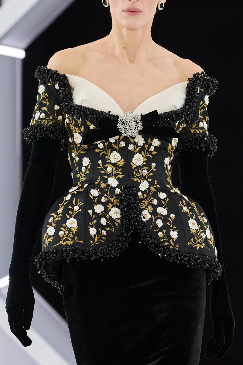 «Мы всегда рассматриваем наш бизнес, как создание прекрасных платьев для всех удивительных событий в жизни наших клиенток, будь то свадьба или какое-то особое мероприятие» - сказал Ричард Куинн - «Мы продаём всё, что показываем на подиуме, и адаптируем это, поэтому в нашем бизнесе есть настоящая эксклюзивная сторона высокой моды. В основном, это красивые платья для красивых случаев, вещи, которые можно передавать из поколения в поколение, семейные реликвии». Полную коллекцию вы можете увидеть здесь: А в этой статье детали коллекции крупным планом. Ключевыми изделиями стали жёсткие расшитые корсеты, пышные юбки и юбки-русалки. Также мы видим длинные перчатки, как из бархата, так и лакированные. А также лакированные ботфорты. Куинн очень любит цветы, и поэтому мы видим практически их на каждом изделии его новой коллекции в виде брошек, вышивки или принта. Листайте галереи: Все коллекции сезона Осень-Зима 2026-2027 собраны здесь: А здесь видео с показов: