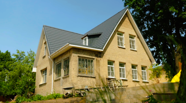 Работы начались с внешней отделки. Сначала занялись крышей: раньше дом был покрыт черепицей, но в 90-х годах предыдущие хозяева заменили её на шифер, который к тому моменту уже совсем испортился. Супруги решили поставить новую современную металлочерепицу — она прочная, долго служит и хорошо подходит для старого дома.