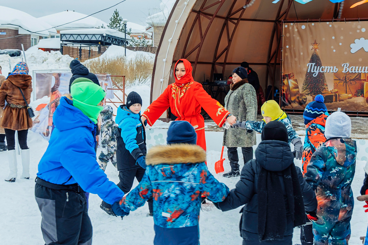 В минувшие выходные жилой комплекс «Мечта» превратился в эпицентр настоящего русского торжества. Масленица здесь — не просто дань традиции, а по-настоящему долгожданный семейный праздник, который в этом году растянулся на два ярких, насыщенных и душевных дня. Под звон колоколов и аромат золотистых блинов жители и гости комплекса проводили зиму и встретили долгожданную Весну. День первый: «Андрейка» встречает гостей Суббота, 21 февраля: большое гулянье началось в парке «Андрейка» (уютно расположенном на территории ЖК): здесь было шумно, весело и многолюдно. Снежные горки, фотозоны, ярмарка рукоделия и музыкальная концертная программа от фольклорных коллективов. Главным героем стола, конечно, стал блин — румяный символ солнца. Их раздавали прямо с пылу с жару, предлагая попробовать с вареньем, сметаной или просто так, макая в горячий чай из самовара. Для самых маленьких жителей «Мечты» организаторы устроили настоящее театрализованное представление. Ряженые скоморохи зазывали прохожих в х