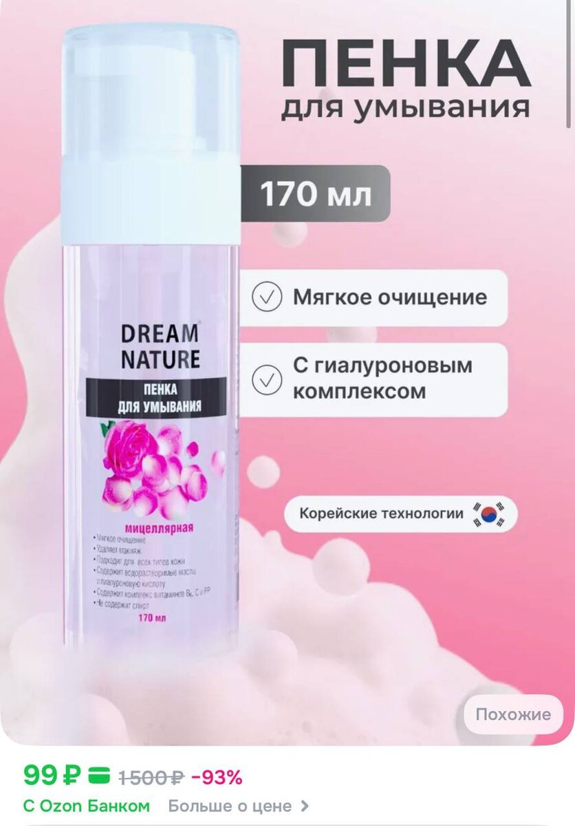 Пенка для умывания лица и снятия макияжа с витамином C, Мицелярка, Увлажняющее средство для умывания лица Dream Nature 170 мл