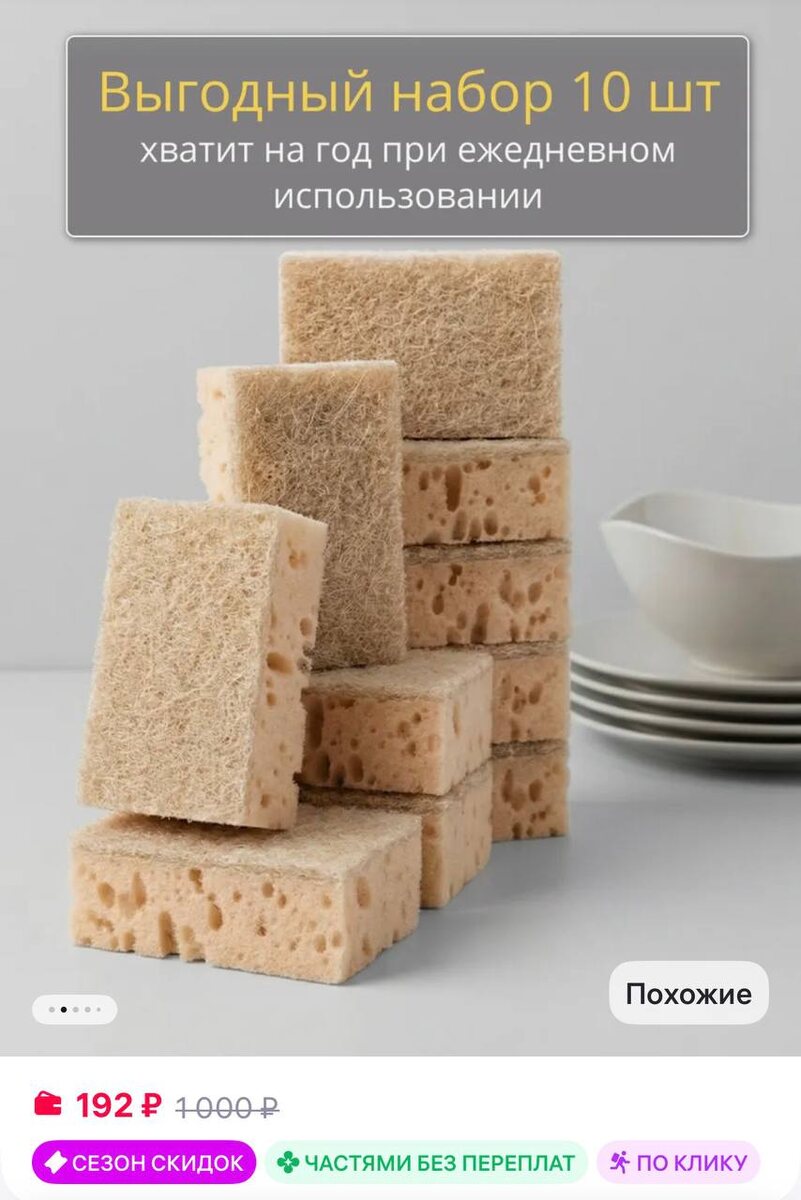 Губки для посуды набор 10 шт