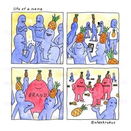 Сейчас же мемом называют фразу, звук, символ, изображение или любое их сочетание, которые быстро распространяются в интернете. Тут уместно будет заметить, что понятие «вирусный контент», хоть и хорошо укладывается в то же определение, но по своей сути отличается от мемов. Последние распространяются, адаптируясь под ситуацию или, когда мы говорим о маркетинге, под стилистику бренда. «Вирус» же — в своем первозданном виде.