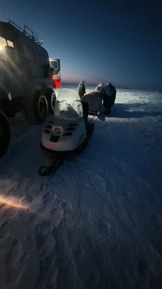 Пятеро взрослых с двумя малышами оказались в 35 километрах от Яр-Сале без бензина на снегоходе. К тундровикам выехали на вездеходе двое спасателей и вернули их в безопасное место.