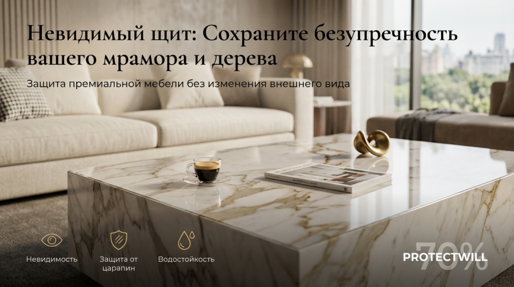 Вы вложили душу (и немалые средства) в создание идеального интерьера: натуральный мрамор на кухне, дизайнерский деревянный стол в гостиной или стеклянные поверхности в офисе. Но как сохранить эту красоту в первозданном виде, если в жизни случается всякое — от пролитого вина до случайных царапин? Решение существует, и оно практически незаметно глазу. Речь идет о прозрачной полиуретановой бронепленке — современной технологии, которая становится «второй кожей» для вашей мебели. В отличие от старых решений (вроде громоздких скатертей или накладок), современная полиуретановая пленка из Японии обеспечивает надежную защиту, оставаясь невидимой. Компания ProtectWill предлагает уникальное решение с гарантией качества на 7 лет. Технология позволяет оклеивать практически любые твердые поверхности. Эксперты ProtectWill специализируются на защите 6 видов материалов: ProtectWill — это не просто поставщик пленки, а сервисная компания полного цикла с собственным производством в Москве. Хотите продлить