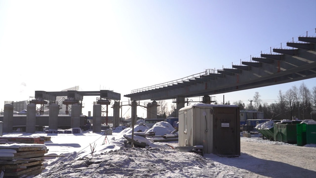 Она расположена на участке пересечения с Приморским шоссе и железной дорогой Сестрорецкого направления. На площадке ведутся буровые работы, устройство фундаментов и опор, а также монтаж металлоконструкций. Строительная готовность развязки приблизилась к 30%, практически возведены 17 из 23 опор. Для размещения новых опор строителям пришлось реконструировать 443 метра Приморского шоссе и сместить направление движения транспорта. Всего трасса М-32 будет включать в себя восемь съездов и путепровод через железнодорожные пути Сестрорецкого направления. Общая протяженность развязки составит 4,2 км — это более половины всей длины М-32. Рабочее движение по развязке планируется открыть к концу 2027 года. Полностью завершить строительство объекта специалисты намерены к ноябрю 2028 года. Фото: скриншот с видео/Город+ Подпишись на Город+: Telegram|MAX|ВК