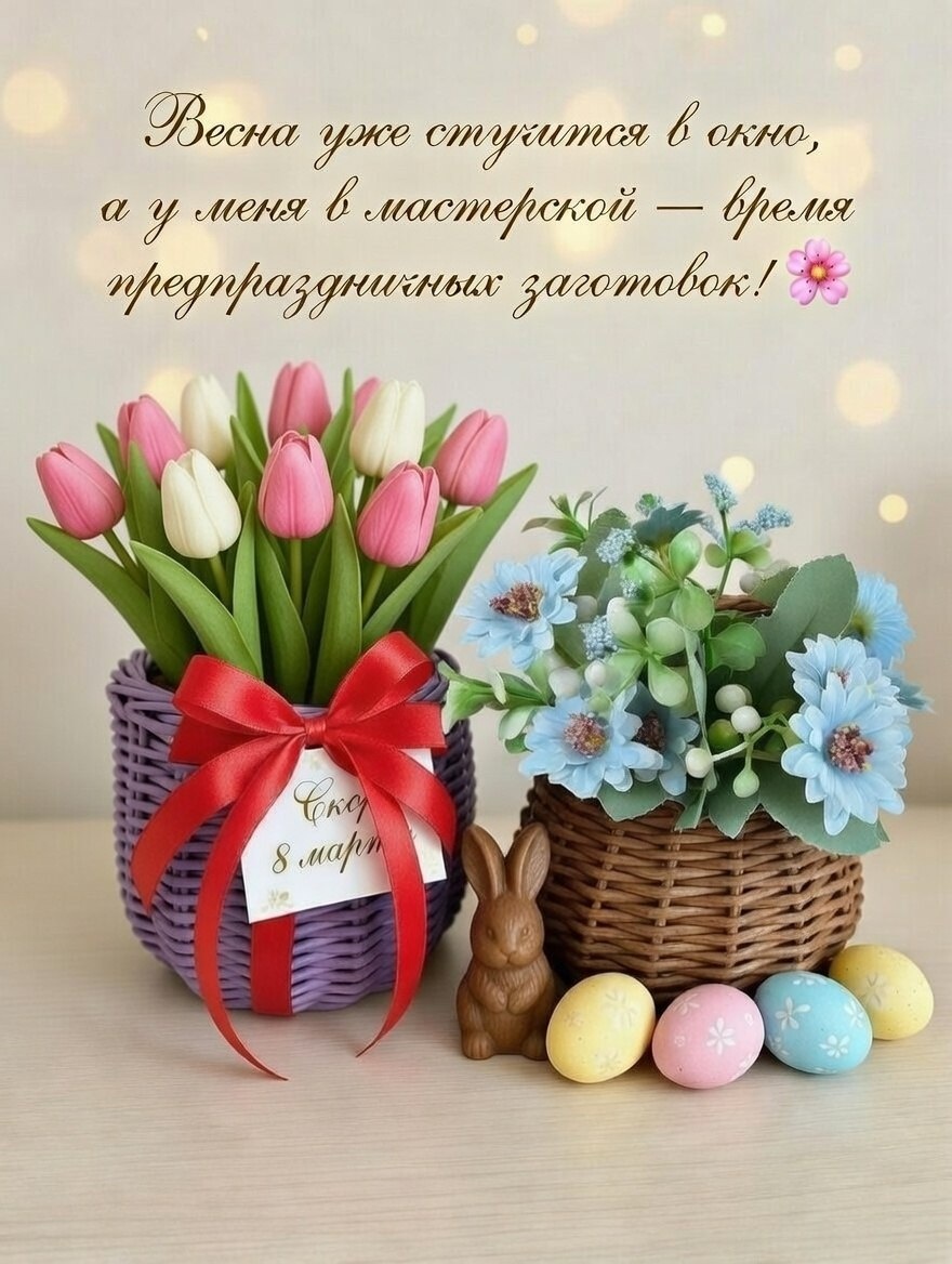 ! 🌸✨ Решила не откладывать и с этой недели начала готовиться к 8 Марту и Пасхе. Пока всё на стадии эскизов, подбора материалов и первых экспериментов. Люблю это чувство, когда идеи уже витают в воздухе, а в руках рождается что-то новое. Сейчас в работе что-то уютное, весеннее. Что это будет, пока мой маленький секрет! Но скоро покажу 😉 А вы уже начинаете чувствовать приближение весенних праздников? Может, у вас есть традиции или планы по созданию уюта к марту-апрелю? Делитесь настроением! Мне важно ваше вдохновение 💫