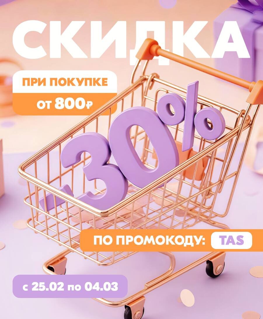 ! ΠΠ°ΡΠΈΠΌ ΡΠΊΠΈΠ΄ΠΊΡ 30% Π½Π° Π²ΡΠ΅ ΡΠΎΠ²Π°ΡΡ: 1. ΠΠ°Π±ΠΈΡΠ°Π΅ΠΌ ΠΊΠΎΡΠ·ΠΈΠ½Ρ Π½Π° 800 ΠΈ Π±ΠΎΠ»Π΅Π΅ ΡΡΠ±Π»Π΅ΠΉ π 2. ΠΠ°Π·ΡΠ²Π°Π΅ΠΌ ΠΏΡΠΎΠΌΠΎΠΊΠΎΠ΄ TAS Π½Π° ΠΊΠ°ΡΡΠ΅. 3. Π‘ΠΊΠΈΠ΄ΠΊΠ° Π²Π°ΡΠ° βοΈ ΠΠ΅Π»ΠΈΡΠ΅ΡΡ ΠΏΡΠΎΠΌΠΎΠΊΠΎΠ΄ΠΎΠΌ Ρ Π΄ΡΡΠ·ΡΡΠΌΠΈ! π
