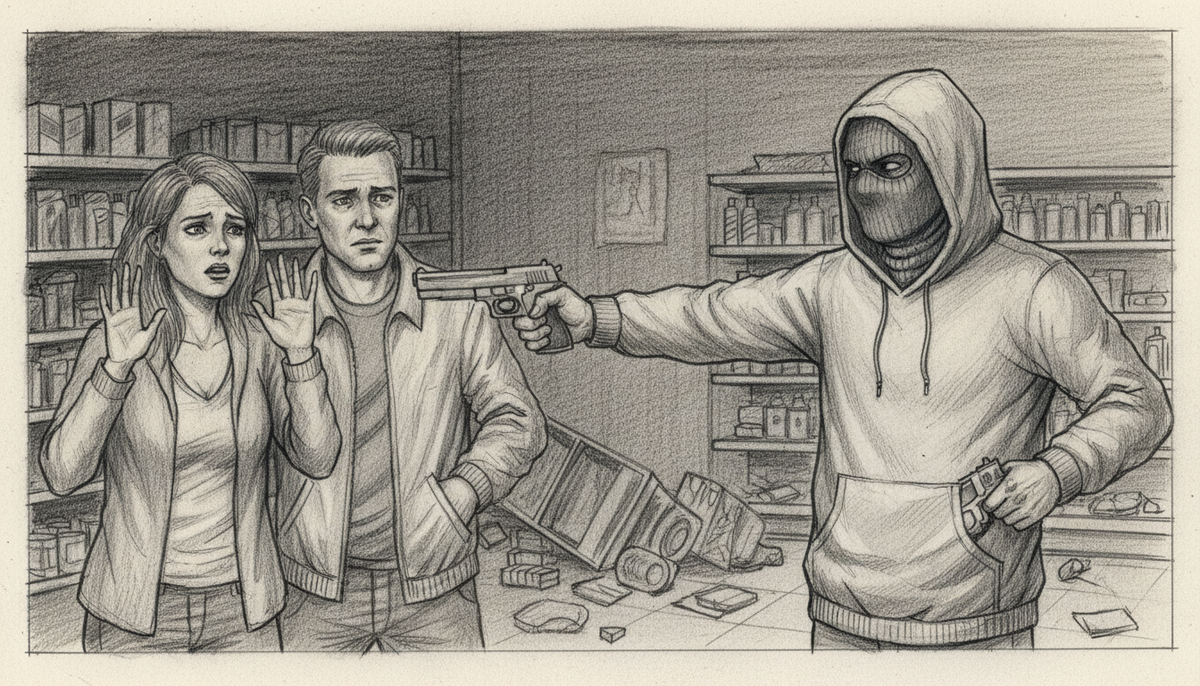 Если преступник предполагает, что у вас может быть оружие, его логичный шаг — не дать вам возможности им воспользоваться. А значит: