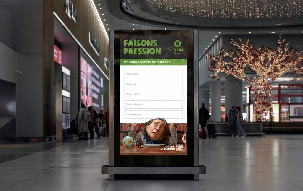 ΠΏΡΠΈΠ±ΡΠ»ΠΈ. ΠΠ³Π΅Π½ΡΡΡΠ²ΠΎ Dogsled Studio Π΄Π»Ρ ΡΠΎΠ½Π΄Π° Oxfam ΡΠΎΠ·Π΄Π°Π»ΠΎ ΠΈΠ½ΡΠ΅ΡΠ°ΠΊΡΠΈΠ²Π½ΡΡ ΠΏΠ΅ΡΠΈΡΠΈΡ Β«ΠΠΎΠ΄ Π΄Π°Π²Π»Π΅Π½ΠΈΠ΅ΠΌΒ», ΠΏΡΠΈΠ·ΡΠ²Π°ΡΡΡΡ ΠΏΡΠ°Π²ΠΈΡΠ΅Π»ΡΡΡΠ²ΠΎ ΠΠ°Π½Π°Π΄Ρ Π·Π°ΡΡΠ°Π²ΠΈΡΡ Π·Π°Π³ΡΡΠ·Π½ΠΈΡΠ΅Π»Π΅ΠΉ ΠΏΠ»Π°ΡΠΈΡΡ ΠΊΠΎΠΌΠΏΠ΅Π½ΡΠ°ΡΠΈΡ ΠΏΠΎΡΡΡΠ°Π΄Π°Π²ΡΠΈΠΌ. Π§ΡΠΎΠ±Ρ ΡΠ΄Π΅ΡΠΆΠ°ΡΡ ΠΏΠΎΠ»ΡΠ·ΠΎΠ²Π°ΡΠ΅Π»Π΅ΠΉ (80% Π±ΡΠΎΡΠ°ΡΡ Π·Π°ΠΏΠΎΠ»Π½Π΅Π½ΠΈΠ΅ ΡΠΎΡΠΌΡ Π½Π° ΠΏΠΎΠ»ΠΏΡΡΠΈ), ΠΏΠ΅ΡΡΠΎΠ½Π°ΠΆΠΈ Π½Π° ΡΠΊΡΠ°Π½Π΅ Π±ΡΠΊΠ²Π°Π»ΡΠ½ΠΎ ΡΠ³ΠΈΠ±Π°Π»ΠΈΡΡ ΠΏΠΎΠ΄ ΡΡΠΆΠ΅ΡΡΡΡ Π·Π°ΠΏΠΎΠ»Π½ΡΠ΅ΠΌΠΎΠΉ ΠΏΠΎΠ΄ΠΏΠΈΡΠΈ, ΠΏΡΠ΅Π²ΡΠ°ΡΠ°Ρ ΡΠΊΡΡΠ½ΡΠΉ ΠΏΡΠΎΡΠ΅ΡΡ Π² ΠΈΠ³ΡΡ. ΠΠ°ΠΌΠΏΠ°Π½ΠΈΡ ΡΡΠ°ΡΡΠΎΠ²Π°Π»Π° Π² ΡΠ½Π²Π°ΡΠ΅ 2026 Π³ΠΎΠ΄Π°.