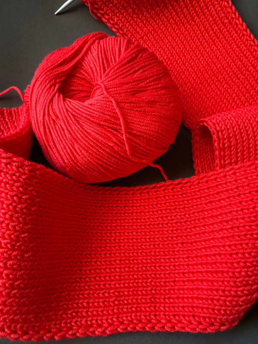 Вчера, листая фотографии, наткнулась на фото, сделанное в музыкальной школе - Аришины преподаватели попросили связать ей красный пояс к саяну. Я совершенно об этом забыла! В срочном порядке полезла в свои короба с пряжей за красным полухлопком. Помните, я хотела в белый кардиган, который я для Саши вязала, добавить синий и красный цвета? Синий с красным не подружились, разные по температуре оказались (издержки заказа пряжи через интернет), а для пояса этот красный подошел. Осталось совсем немного довязать. Набралась сил и сшила детали Сашиного кардигана, который я вяжу для Практикума в книге. С ним предстоит самая кропотливая работа теперь, нужно связать планку. А планка - это обработка края ложной кеттлевкой "в карман". Нужно, чтобы зрение фокусировалось хорошо, а я и в очках сейчас вижу не очень хорошо. Еле детали сшила. Постараюсь завтра швы отпарить. Вяжу Аришкин кардиган, там лицевая гладь, а ее я могу вязать с закрытыми глазами. Пока буду вязать его. В моем спицепарке произошл