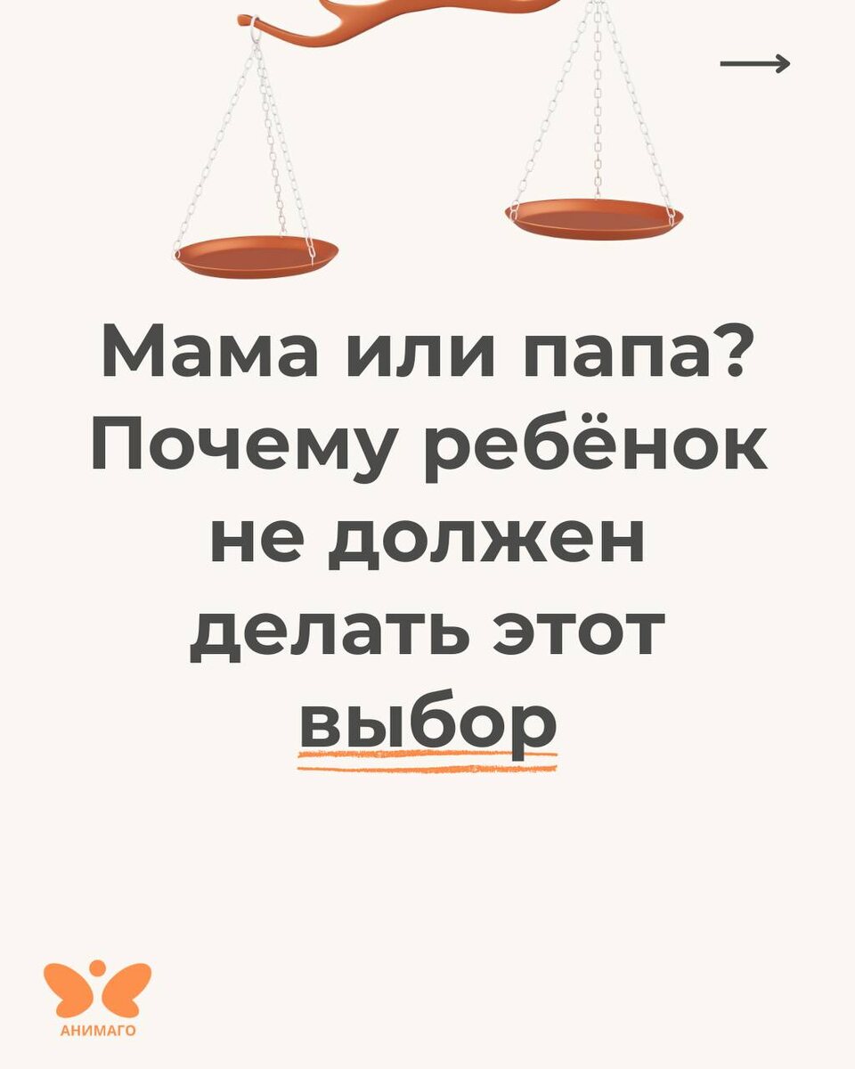 Малыш, зажатый между родителями, живёт в постоянном страхе выбора — остаться с мамой или папой. Это глубоко ранит детскую душу, подрывает чувство безопасности и может оставить след на всю жизнь. В «Анимаго» мы помогаем детям пережить этот сложный период. Наши специалисты бережно работают с детскими переживаниями, помогая вернуть доверие и спокойствие в жизнь ребёнка. Подробнее о консультации — по ссылке. 🦋 Анимаго