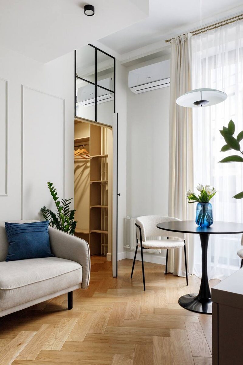 В дизайне придерживались идеи светлого интерьера с деликатными классическими нотами. Проект создавался с целью подготовки квартиры к последующей продаже — важно было сделать пространство универсальным и привлекательным. НАХОДКИ ПРОЕКТА Диван прямой Коренс-3 Happy Grey - 39 990₽ Кресло Виль Barhat Beige - 29 990₽ Торшер Нидлс-2 Black - 15 990₽ Кухонный стол Тюлип 100 Black - 24 690₽ Кровать Адель 140 Velvet Light - 30 990₽ Кресло Стоун - 33 990₽ Журнальный стол Ар-деко - 17 465₽ Стул Нэлли - 10 990₽ Бюджет: 3,3 млн рублей Автор проекта: дизайнер Светлана Немцова Авторы фото: Дарья Мягкая, Наталья Добудько #дизайн_проект #двушка