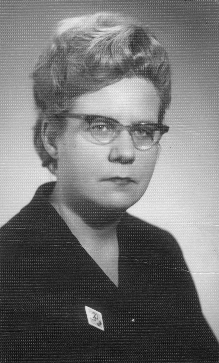 Женщина с нагрудным академическим знаком об окончании педагогического (библиотечного) ВУЗа