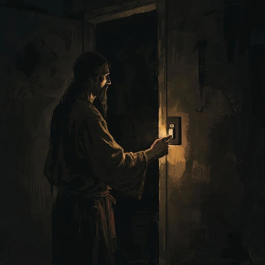 Манипуляция не работает при свете. Как только вы включаете свет, вы видите: пол кривой, стены в трещинах, а тот, кто вёл вас за руку, вовсе не друг, а просто человек, которому нужно, чтобы вы дошли до его цели.