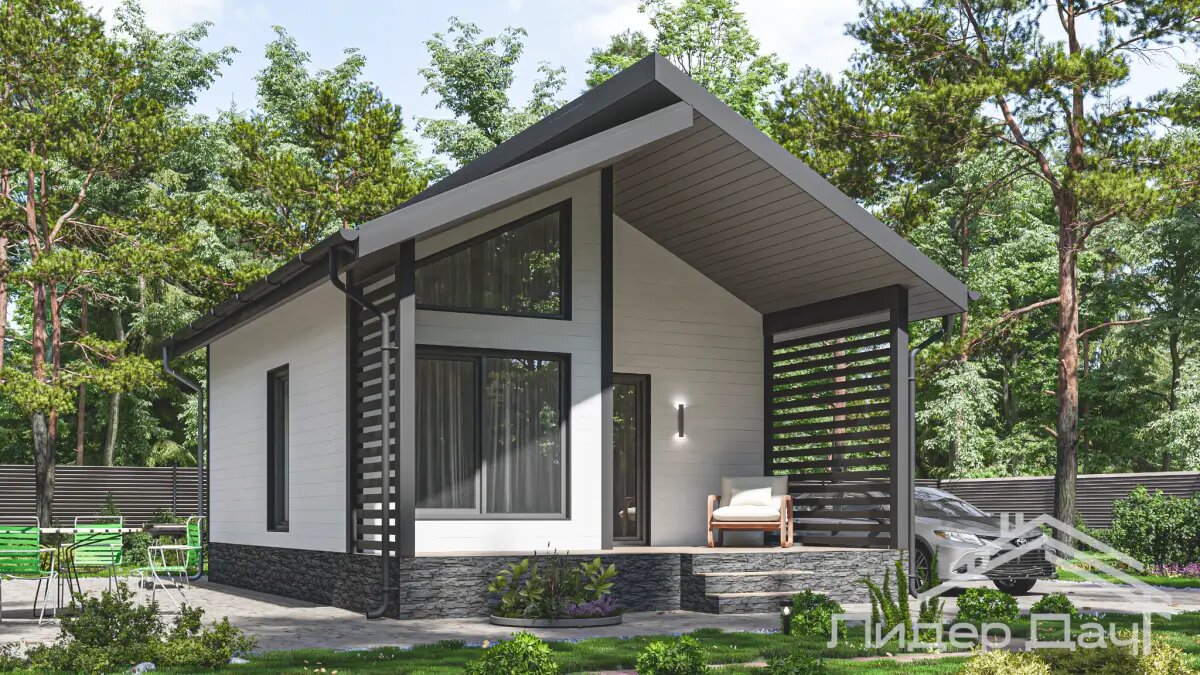 Компактный и очень логичный по планировке вариант для небольшого участка или старта «с первой дачи».