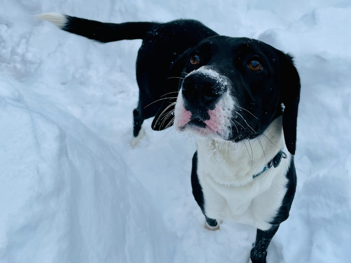Бимка нормально так носился и по этим узком тропкам, а дедушка все равно так далеко зимой в огород не пойдет.