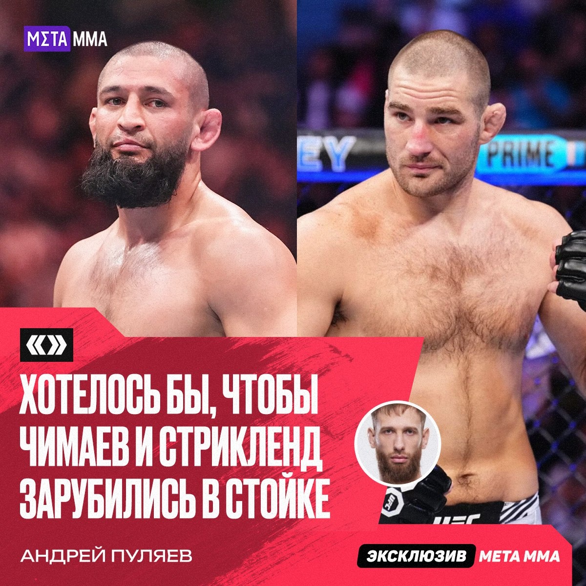 Боец UFC Андрей Пуляев поделился ожиданиями от потенциального боя чемпиона Хамзата Чимаева и Шона Стрикленда, отметив, что хотел бы увидеть зрелищную зарубу в стойке. «Хотелось увидеть несколько противостояний Хамзата Чимаева в среднем весе до перехода в полутяжелый дивизион. Одно из самых интересных – с Шоном Стриклендом. Перед боем в плане раскрутки Шон точно будет на высоте. Мне хотелось бы, как фанату единоборств, чтобы Стрикленд и Чимаев зарубились в стойке. Чтобы была драка, размены, кровь и все такое. Но Хамзат на другом уровне. Все думали, что Дрикус дю Плесси влегкую защитится от борьбы Чимаева. Мы слышали, что Дрикус даже каких-то олимпийских борцов подтягивал в лагерь, а в итоге что вышло? Все знали, что будет делать Хамзат, что надо защищаться от борьбы, но в итоге Дрикус вообще ничего не смог. Бой Чимаева со Стриклендом пройдет точно так же, как и с Дю Плесси. Хочется, чтобы была драка – грязь, кровь, сопли, слюни, чтобы все летело в разные стороны, а я счастливый и дов