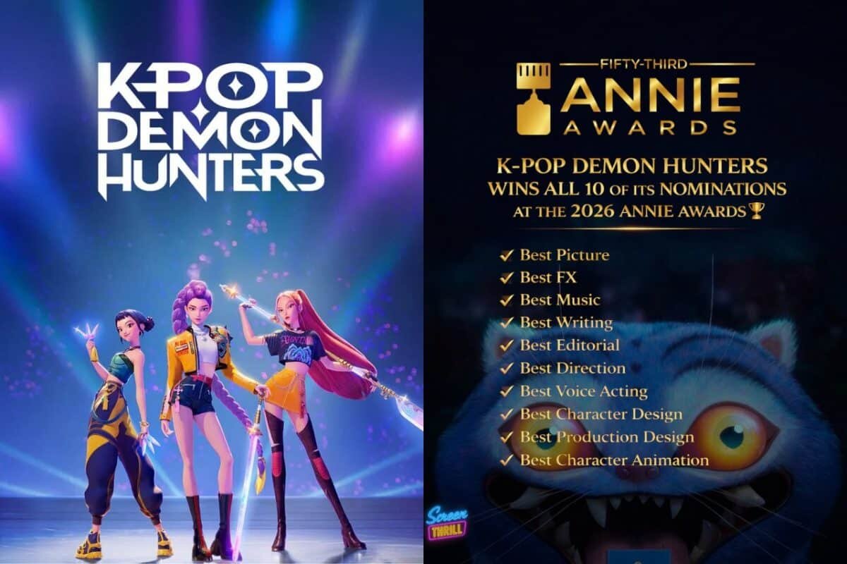 По сообщению издания Insight, анимационный фильм Netflix «Кей-поп-охотницы на демонов» завоевал 10 наград на 53-й церемонии Annie Awards, которую называют «Оскаром в мире анимации». Картина стала главным триумфатором вечера, одержав победу во всех категориях, в которых была номинирована, том числе за лучший полнометражный фильм, режиссуру, озвучивание, визуальные эффекты, дизайн персонажей, музыку и художественное оформление. Смотрите также: Звёзды «Кей-поп-охотниц на демонов» исполнили «Golden» на премии BAFTA Актриса Арден Чо, озвучившая главную героиню, была удостоена премии за лучшую озвучку. В своей речи она заявила: «Я очень рада получить награду Annie Awards. Для меня было честью озвучивать Руми — персонажа, который смело противостоит трудностям. Надеюсь, каждый сможет обрести мужество преодолевать страх так же, как Руми». Она добавила: «Особенно значимо, что благодаря этому проекту культура Кореи и энергия K-pop смогли распространиться по всему миру». Премию Annie Awards ежегод