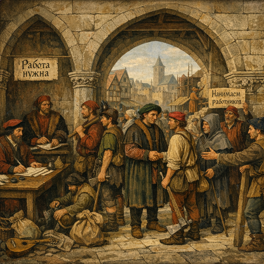 Если бы вы открыли биржу труда XV века, вы бы не поверили своим глазам. Ловец крыс — понятно. Палач — ожидаемо. А вот, например, «будильщик с палкой». Или человек, который официально… нюхает подмышки короля. Нет, это не шутка. Прошлое вообще было изобретательным на профессии. Иногда — от нужды. Иногда — от странных представлений о порядке. А иногда просто потому, что жизнь была устроена иначе. В Англии и Ирландии XIX века существовала профессия «knocker-up» — будильщик. Он ходил по улицам ранним утром и длинной палкой стучал в окна клиентов. Иногда использовали тростинки или даже духовые трубки с горошинами — чтобы попасть точно в стекло. Будильников не было. Фабрики требовали точности. И вот человек за небольшую плату каждое утро гарантировал вам подъём. Главное — не проспать самому. При дворе Тюдоров в Англии существовала должность Groom of the Stool. Формально — хранитель королевского туалетного кресла. Фактически — человек, который сопровождал монарха в самые интимные моменты, след