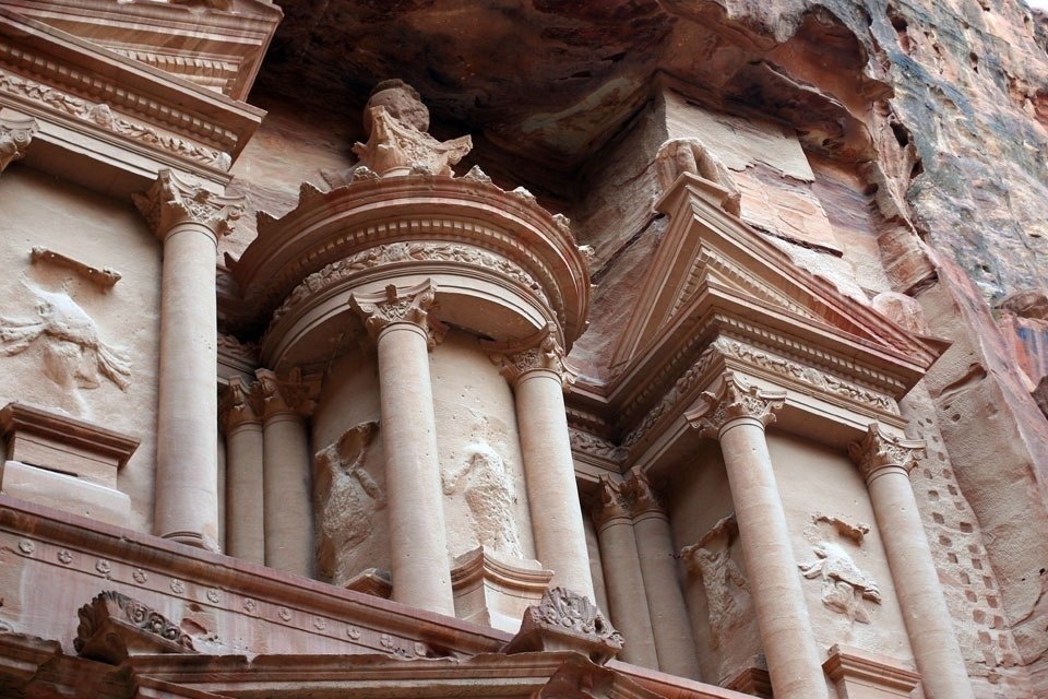 ) Эль-Хазне («сокровищница») — набатейский храм эпохи эллинизма в Петре. Представляет собой монументальное здание, вырезанное целиком из скалы в I веке. Ордерный фасад здания составляет 40 метров в высоту и 25 метров в ширину. Терра инкогнита | Неизвестная земля