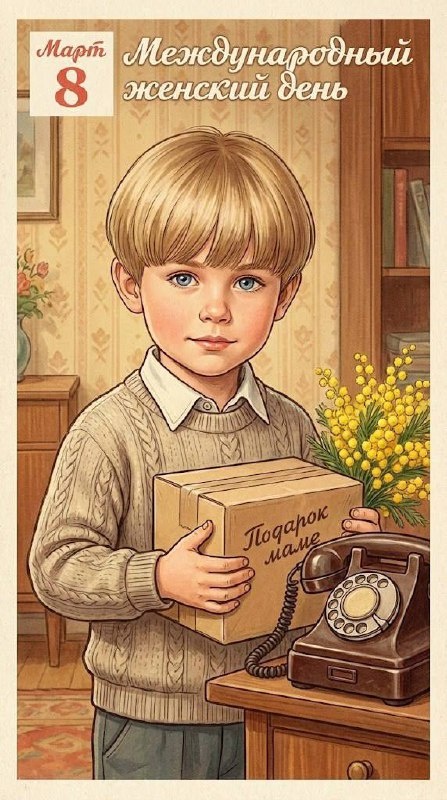 🌷 Советская открытка 50-х с мягкой иллюстрацией ребенок с подарком для мамы #8марта@promtgs Использовали BANANA 👉 Создать свое фото в 1 клик 👉 Промт 💬 Создаем в боте: https://t.me/gptcyber_bot 💬 Чат подписчиков для вопросов https://t.me/ChatGptCyberbot