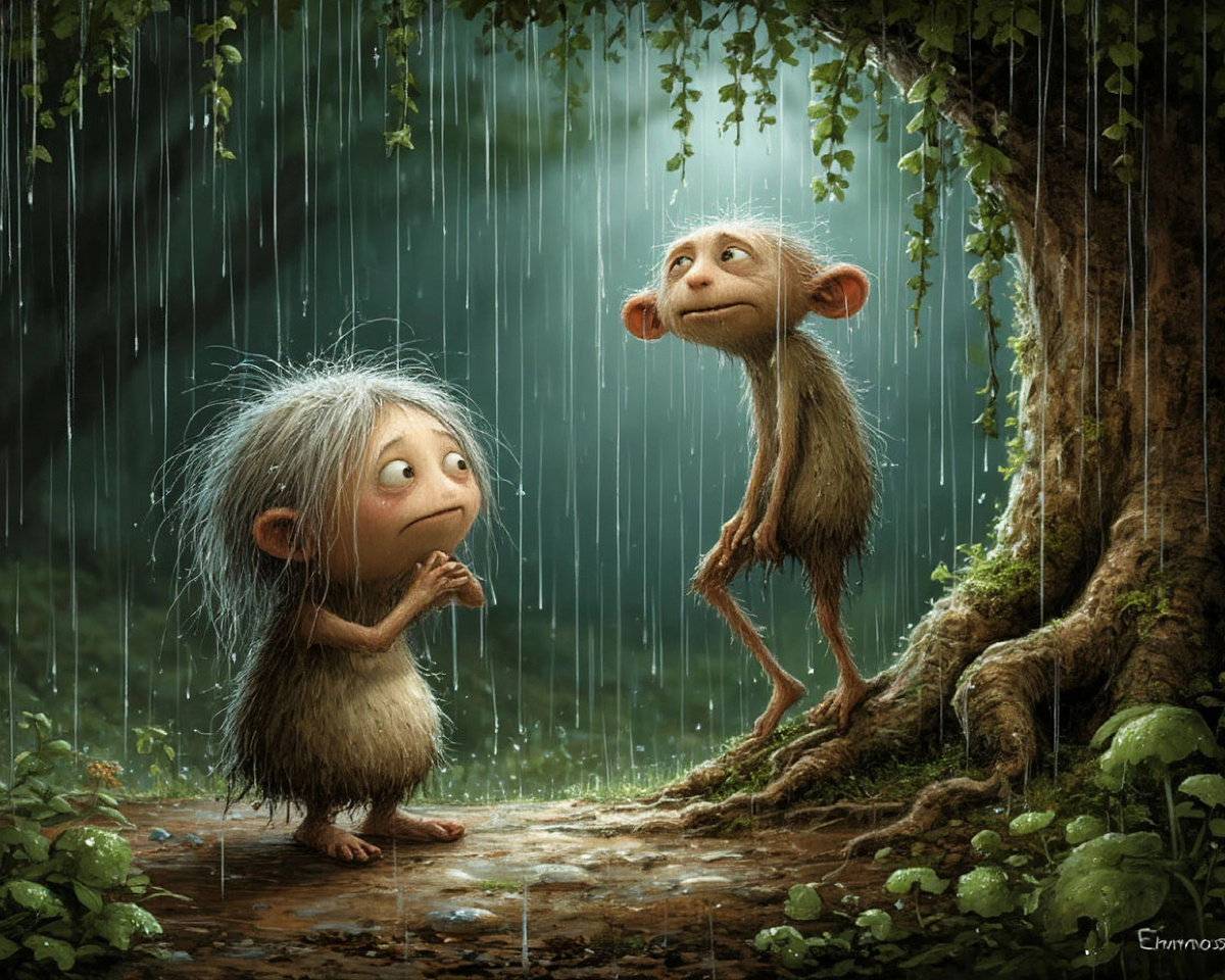 Представляете, вот обожаю я Шедеврум ))) Во-первых, если пропало вдохновение, бегу туда и повторяю промты пользователей! А что, очень удобно, вообще-то. Конечно, Шедевруму есть к чему стремиться, но вдохновляет он очень здорово. И так как Шедеврум позволяет сохранить всего лишь одну из пяти сгенированных картинок, я решила публиковать их здесь. 1 Оцените эти прелестные создания. В конце статьи напишу тот самый промт, которым я пользовалась. Итак, промт: Суровые будни. Samorost. Rainy mood, cute, glitter, naive, illustration in the style of Jean-Baptiste Monge. Samorost. Close - up. Emotions. Попробуйте и напишите в комментариях, какие картинки получились у вас!