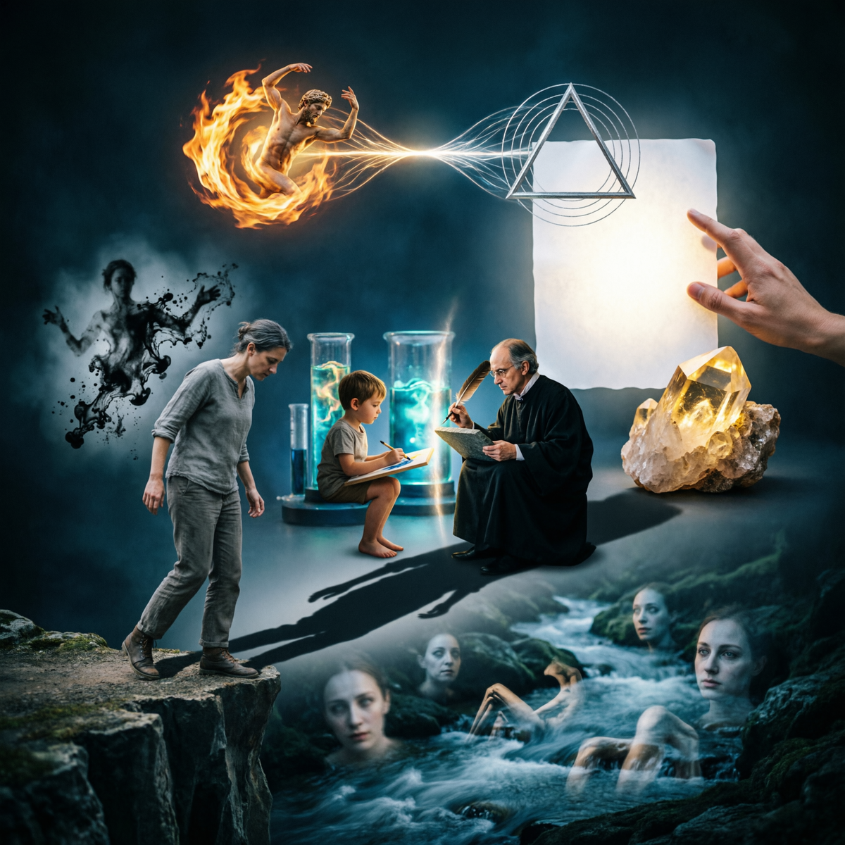 Мы спустились в подземные реки, увидели, как автономные комплексы требуют воплощения, как травма ищет исцеления в образе, как регрессия становится инструментом познания. Но теперь нам предстоит подняться в лабораторию сознания — туда, где этот сырой материал встречается с критикой, волей и формой. Где внутренний ребенок встречается с внутренним критиком, и где решается, быть ли хаосу искусством или остаться просто хаосом.