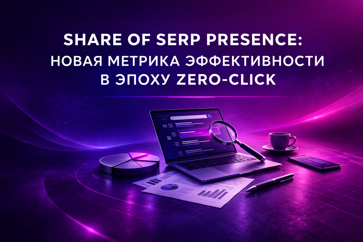 В этих условиях старая метрика «позиция в топе» теряет свою актуальность. На смену ей приходит новая - Share of SERP Presence (доля присутствия в выдаче). Это показатель, который измеряет не количество переходов, а сам факт появления бренда или его упоминаний во всех элементах поисковой выдачи по целевым запросам.