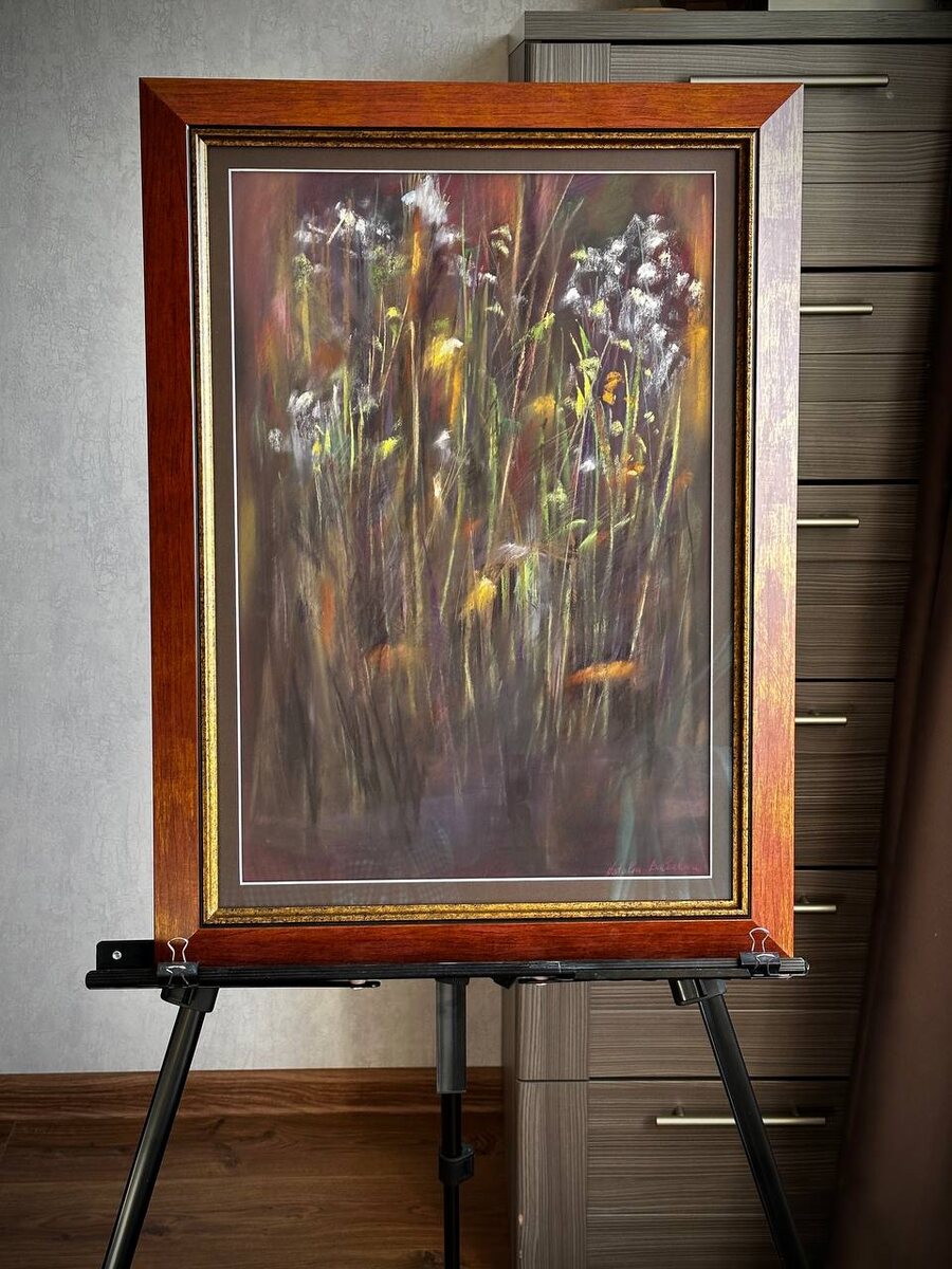 » Эта работа — о внимании. О том, как важно останавливать взгляд и замечать простые вещи. В ней нет претензий на эпос; в ней — тишина и умиротворение. И воспоминания о вечерней прогулке, о запахе полыни, о тёплом ветерке. Оформлена 64*49*2