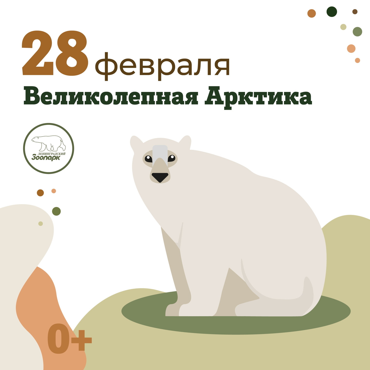 27 февраля отмечается Всемирный день белых медведей. Эти полярные хищники – замечательные пловцы, изобретательные охотники и заботливые родители. А для Ленинградского зоопарка белый медведь – ещё и главный символ! К сожалению, популяция этих млекопитающих находится под угрозой исчезновения по причине климатических изменений в мире. Поэтому так важно говорить об уникальности северных хищников и заботиться об их благополучии и среде их обитания. 12:00-16:00 – Маршрутная игра-квест*: ❄️Станция «Сила Арктики» (1 этаж павильона «Экзотариум»); ❄️Станция «Кочевники Арктики» (павильон «Приматы»); ❄️Станция «Прошлое Арктики» (павильон «Тропический дом»); ❄️Станция «Сказки Арктики» (павильон «Тропический дом»); 12:00-16:00 – Мультимедийная викторина «Лед всемогущий» (1 этаж павильона «Экзотариум»); 12:00-16:00 – Творческий мастер-класс «Полярная ночь» (1 этаж павильона «Экзотариум»). *Маршрутные листы выдаются до 15:30 ❗️Участие в программе бесплатное, необходимо только приобрести входной билет