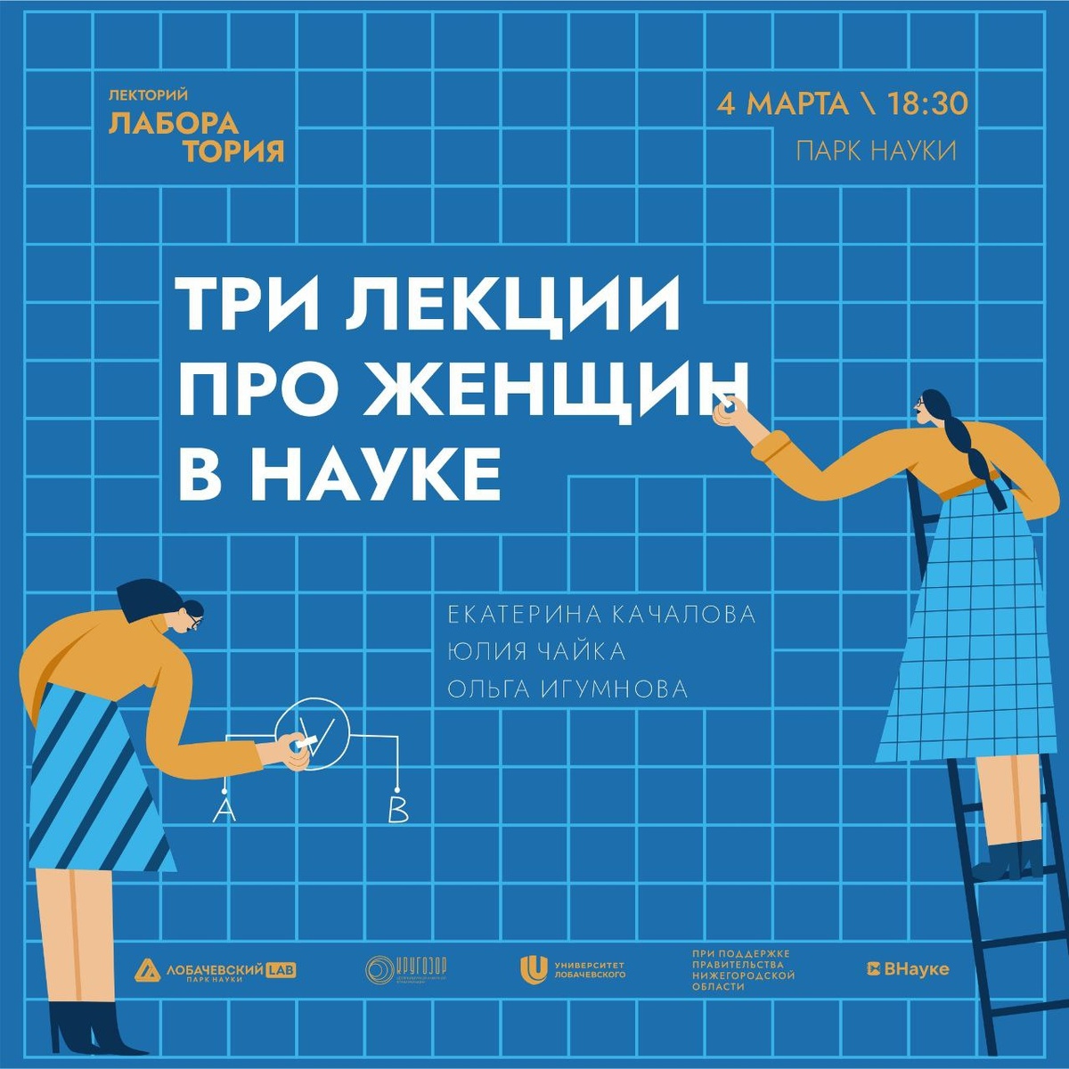 4 марта | 18:30 | Парк науки (Ульянова, 10Б) 🟠 Февраль — месяц, когда мир говорит о женщинах в науке. Март — месяц, когда мы говорим о женщинах вообще. На стыке этих двух дат приглашаем вас на вечер, где встретятся три эпохи, три профессии и три невероятные истории. О женщинах, которые меняли право, химию и технологии. 🟡Лекция «Екатерина Флейшиц: верность правовым идеалам вне времени» О том, как идеи первой женщины-адвоката в России живут в современном праве и почему её судьба важна сегодня, расскажет Юлия Чайка — научный сотрудник, старший преподаватель кафедры гражданского и международного права НИУ РАНХиГС, председатель Совета молодых юристов Нижегородской области. 🟡Лекция «Хеди Ламарр: женщина, не ставшая учёной» Вы пользуетесь Wi-Fi каждый день. Знаете имя человека, благодаря которому это возможно? Ольга Игумнова, филолог и магистрант Университета Лобачевского по направлению «Психологическое консультирование», расскажет о Хеди Ламарр — голливудской актрисе, женщине без диплом