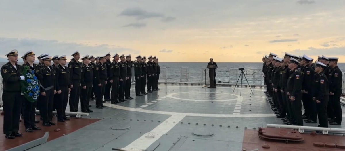 Экипажи кораблей Тихоокеанского флота почтили память погибших в Цусимском сражении российских моряков, сообщили в среду в пресс-службе Министерства обороны России. На кадрах офицеры проводят мемориальную церемонию на палубе корвета «Резкий». «Проходя такие памятные места, всегда испытываешь неисчерпаемое чувство гордости за подвиги наших предков, проявивших героизм и мужество в Цусимском сражении. Также испытываешь огромное чувство ответственности, так как на нас возложены такие задачи, как демонстрация Андреевского флага и защита морских рубежей нашей Родины», — отметил офицер корабля Константин Скороход. Цусимское сражение — это решающая морская битва Русско-японской войны 1904-1905 годов, в ходе которой российская эскадра была полностью разгромлена силами Императорского флота Японии. После этого для Российской империи война завершилась поражением. В Минобороны РФ добавили, что после торжественной церемонии корветы «Резкий» и «Совершенный» приступили к форсированию в открытых водах.