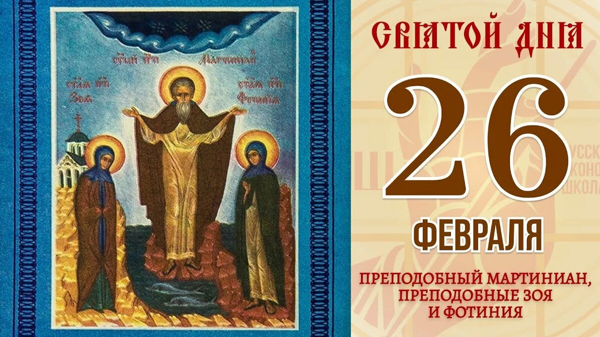 День памяти преподобного Мартиниана и святых жен Зои и Фотинии (Светланы) отмечается Православной церковью 26 февраля (по новому стилю). В этот день вспоминается удивительная история трех святых, чьи жизни чудесным образом переплелись, явив миру примеры великой веры, покаяния и самопожертвования. Преподобный Мартиниан начал свой иноческий путь в возрасте 18 лет, удалившись в пустыню близ Кесарии Палестинской, где провел в подвигах и безмолвии 25 лет . За свою добродетельную жизнь он получил от Бога дар исцеления болезней. Однако враг рода человеческого не оставлял попыток поколебать святого. Однажды блудница по имени Зоя, наслушавшись разговоров о святости Мартиниана, поспорила, что сможет соблазнить его . Ночью, переодевшись в рубище, она пришла к его келье под видом замерзающей странницы и попросилась на ночлег. Святой, движимый милосердием, впустил ее. Ночью Зоя переоделась в дорогие одежды и начала соблазнять подвижника . Чувствуя в себе борьбу с искушением, святой Мартиниан выш
