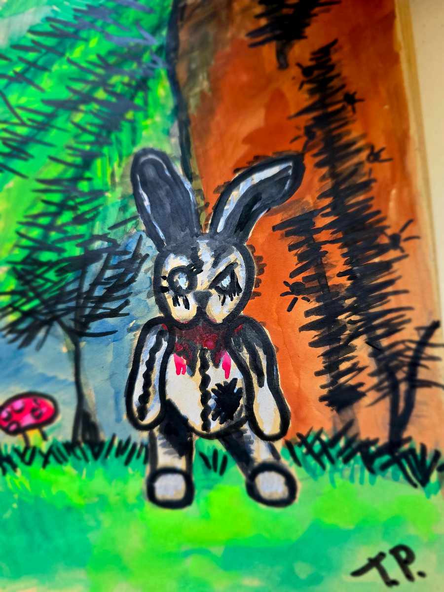 — С другом. Он зайчика принёс, зовёт играть. Ему там одному скучно.