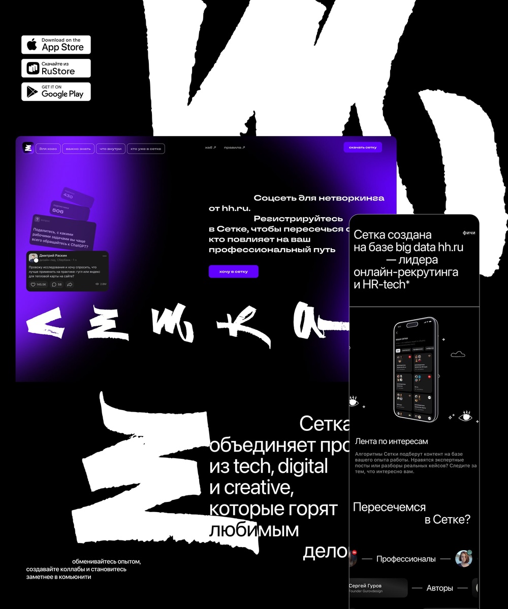 ? На связи Аня Пачганова (продюсер): Мы недавно реализовали проект совместно с SETTERS. Ребята отвечали за создание бренд-платформы, а мы разработали лендинг для презентации продукта. Сетка — это новая социальная сеть от hh.ru, которая помогает легко строить профессиональные связи и открывать новые карьерные возможности. Одной из киллер фич являются сетки — объединения людей по общему профессиональному опыту. С первого экрана мы постарались передать дерзкий характер бренда и продемонстрировать продукт через его фичи. Для этого мы совместили строгую сетку, графические элементы логотипа и все это завернули в уникальные анимации и переходы. Получилось, на наш взгляд, смело и продуктово показать все преимущества. Можно посмотреть тут: https://hi.setka.ru 😎 #rebootcase #productcorner В этом посте есть большое видео, которое не загрузилось в Дзен. Откройте оригинал поста в телеграме, чтобы его посмотреть