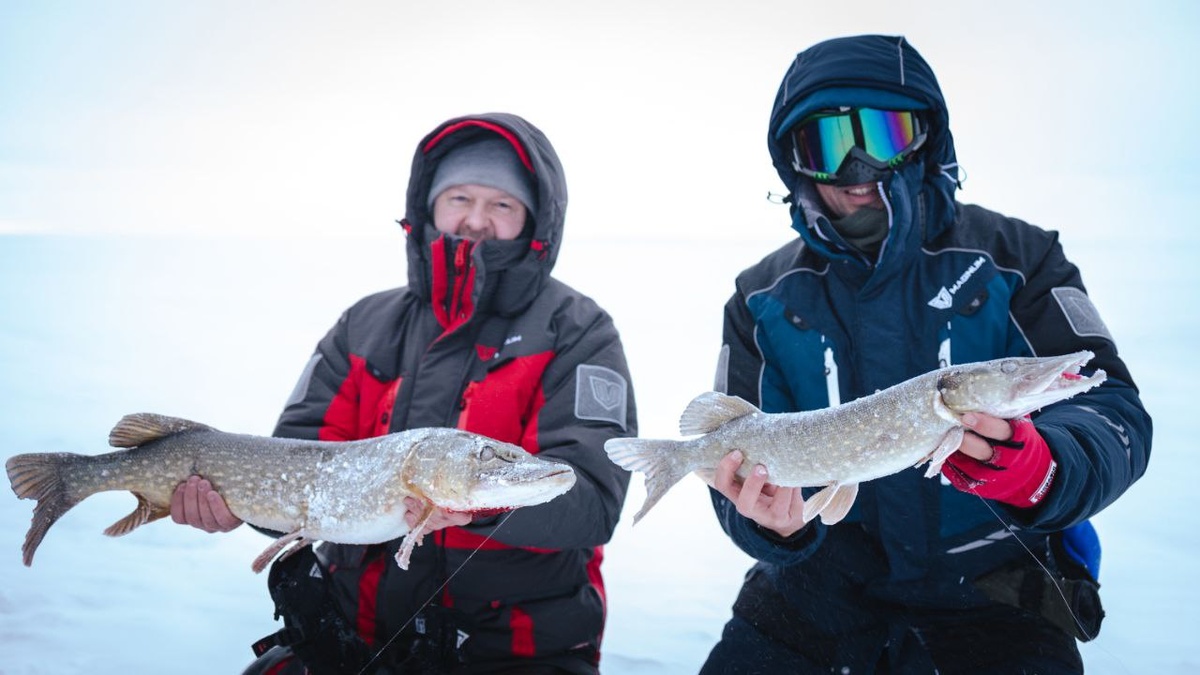 День 3. Это заключительный пост о поездке команды Magnum Gear на большую реку — величественную, своенравную, с обилием трофейной рыбы. Если в предыдущие дни нам удавалось уговаривать пузатых судаков, то на третий день они будто объявили забастовку, приманки игнорировались. Казалось, клыкастый просто исчез. Но, как это часто бывает на рыбалке, решение пришло неожиданно. Утром, пробуя раскачать судака на вчерашних точках, я случайно вышел на песчаную гряду с глубиной до 5 м. В эхолоте плотная стая. Предположил, что это белая рыба и решил тщательно проработать перспективный пятак с глубинами 5–6,5 м. На 5 м — тишина. Ни подъёмов, ни интереса. Но стоило сместиться на 6 м и начать опускать приманку, глядя в «телевизор» Calypso, я увидел, как снизу вверх ракетой выстреливает силуэт хищника! Останавливаю приманку и тут же резкий, злой удар! Адреналин мгновенно разгоняет кровь. Под лункой яростная борьба. Рыба не сдаётся, давит, трясёт головой, пытается уйти в сторону… Несколько напряжённых