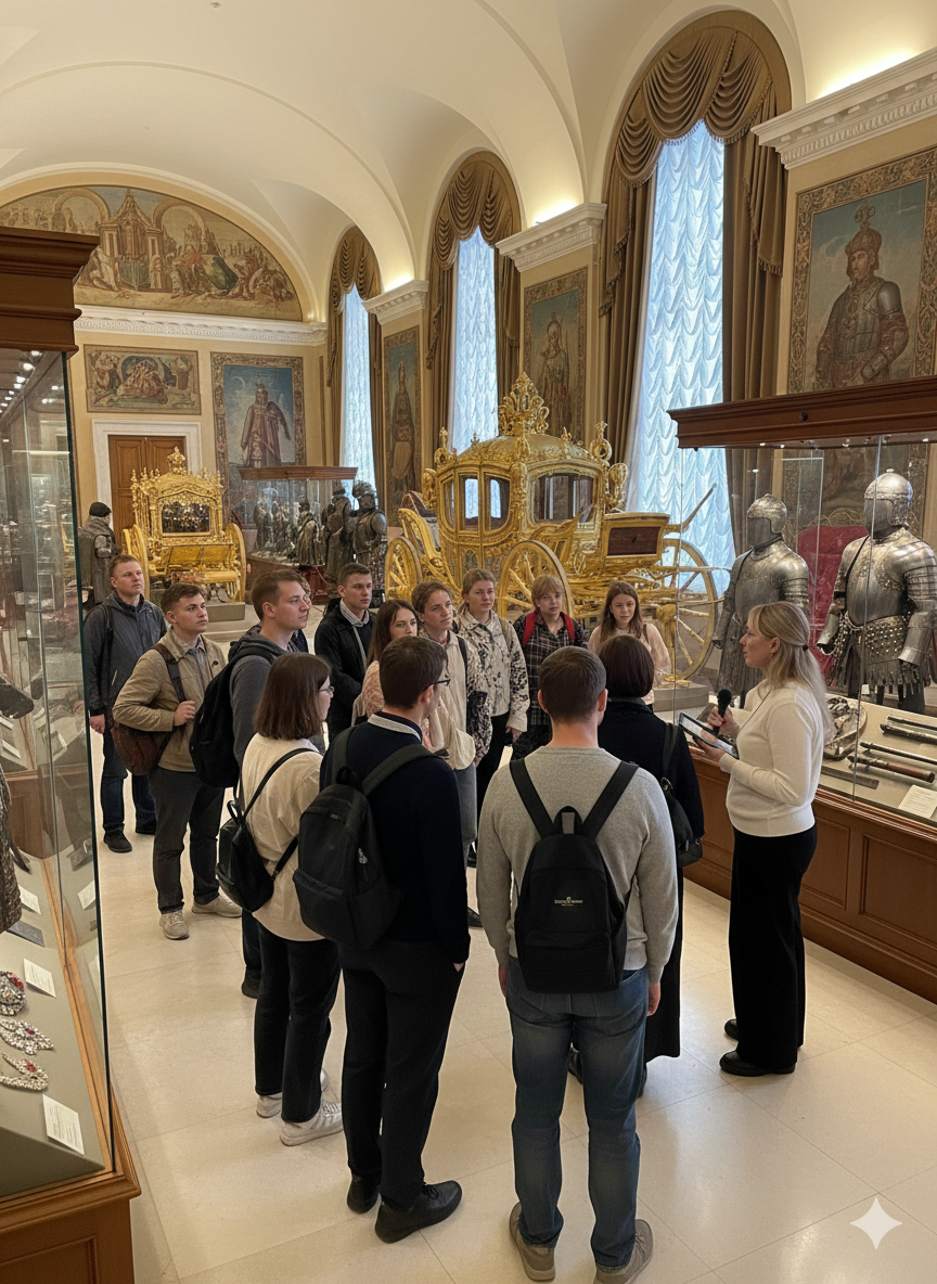 - Сколько времени нужно на осмотр достопримечательностей в Оружейной палате? Стандартный сеанс рассчитан на 1,5–2 часа, и этого вполне хватит, чтобы увидеть главные экспонаты. Если хотите изучить каждый зал подробно — закладывайте все 2,5–3 часа.