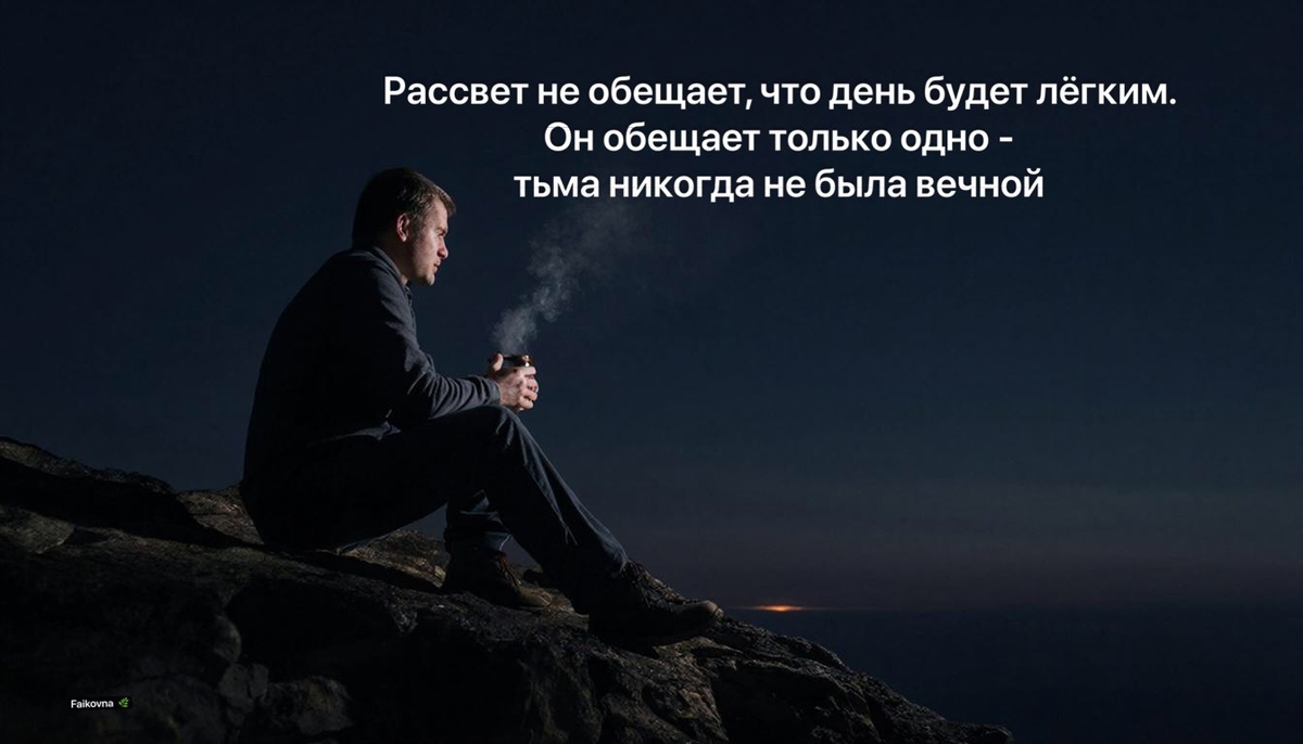 25.02.26. «Самая тёмная часть ночи — прямо перед рассветом. Но именно в эту минуту мы чаще всего закрываем глаза и перестаём смотреть на небо» Почему ожидание рассвета — это навык? 1. Физиология надежды · Мозг не умеет ждать «в пустоту» — ему нужны якоря · Серотонин (гормон спокойствия) вырабатывается, когда мы верим в результат · Даже 1% веры способен удерживать нейронные связи от разрушения 2. Математика тёмных полос · Средняя длина «чёрной полосы» — от 3 до 6 месяцев · 80% людей сдаются за месяц до реального улучшения · Рассвет наступает всегда, но не всегда — по нашему будильнику 3. Психология «долгого утра» · Самые важные рассветы случаются после самых долгих ночей · То, что мы называем «чудом» — обычно просто рассвет, который мы дождались · Люди, пережившие 1000+ тёмных часов, видят мир иначе — они знают цену свету Как дождаться, когда силы на исходе? 1. Техника «Микро-рассветов» · Ищите свет не «когда-нибудь», а прямо сейчас: ✓ Тёплая кружка в холодных ладонях ✓ Чей-то до