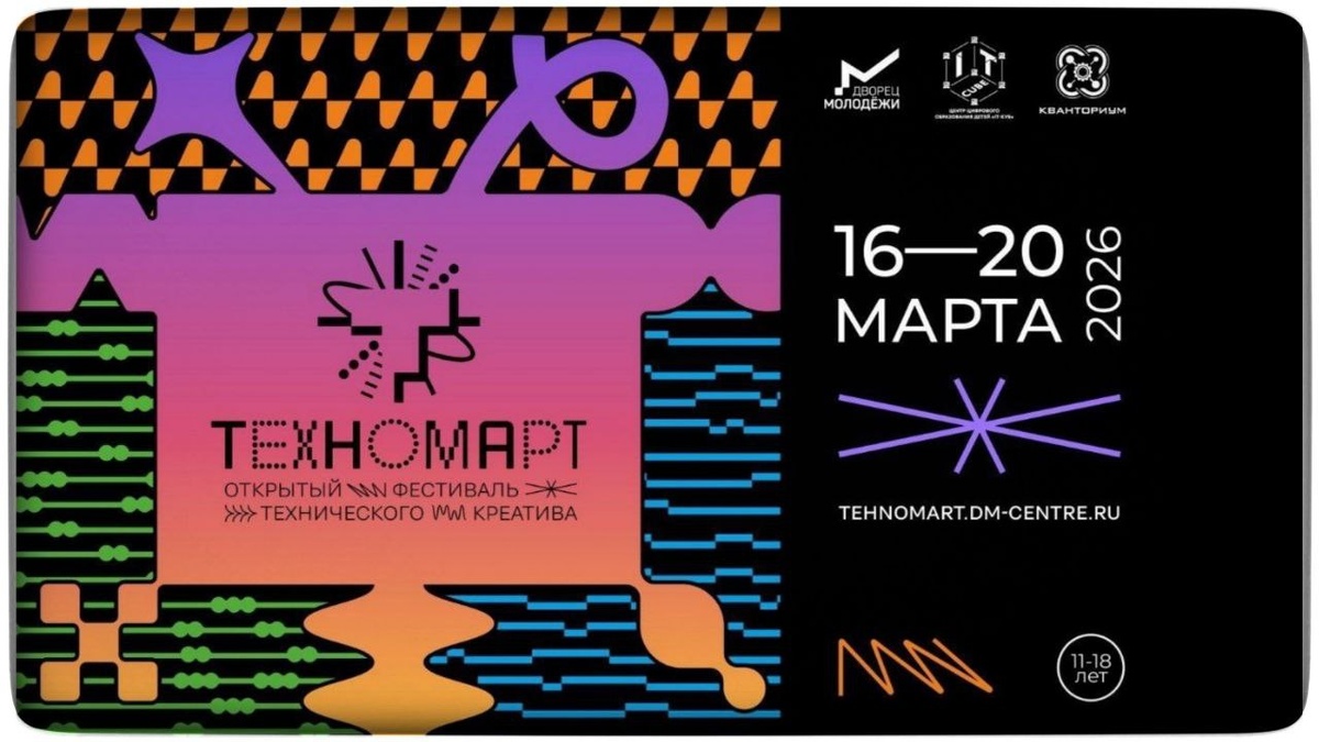 Стартовала регистрация на Открытый фестиваль технического креатива «ТехноМарт». К участию приглашаются школьники в возрасте 11–18 лет. Фестиваль пройдëт по трëм направлениям: 1. «Технологическая лаборатория» (робототехника и инженерия); 2. «Творческая лаборатория» (дизайн и медиа); 3. «Цифровая лаборатория» (IT и VR/AR). Среди конкурсных заданий – реальные производственные задачи предприятий-партнëров. Регистрация до 09 марта 2026 года. Организаторы – центры цифрового образования «IT-куб», детские технопарки «Кванториум» и медиацентр Дворца молодёжи. Дзен | ВК | ОК | МТ | Телеграм