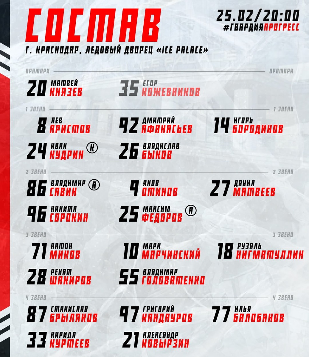🔥 С первых минут место в воротах займет Матвей Князев #20