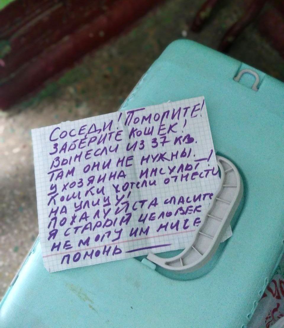 ❗Помогаем информационно❗ У хозяина случился инсульт, у хозяйки – запой. Девочек упаковали в переноски и оставили в подъезде. Кто-то из пожилых соседей написал записку. Неравнодушные люди пожалели бедняжек, пришли к их хозяевам, предлагали помощь, пытались вразумить. В ответ слышали лишь жестокие обещания вынести кошек в лес, если никто их не заберёт. Словно вещи, которые сначала выставляются в подъезд – может, пригодятся кому-то, а если нет - утилизируются на свалку. Две ласковых, добрых девочки потеряли всё. Страшнее самого предательства могла быть только их участь на улице: домашние девчушки не выжили бы. Активисты этого дома наглухо заварили все подвалы, а значит – девочкам негде было спрятаться от опасностей и непогоды, укрыться от дождя, поспать. После очередного заверения, что хозяйка отнесёт их в лес, стали искать волонтёров. Когда позвонили нашим волонтёрам, прислали фото с запиской, сразу приняли решение забирать. Несмотря на тяжёлую финансовую обстановку, несмотря на закрыв