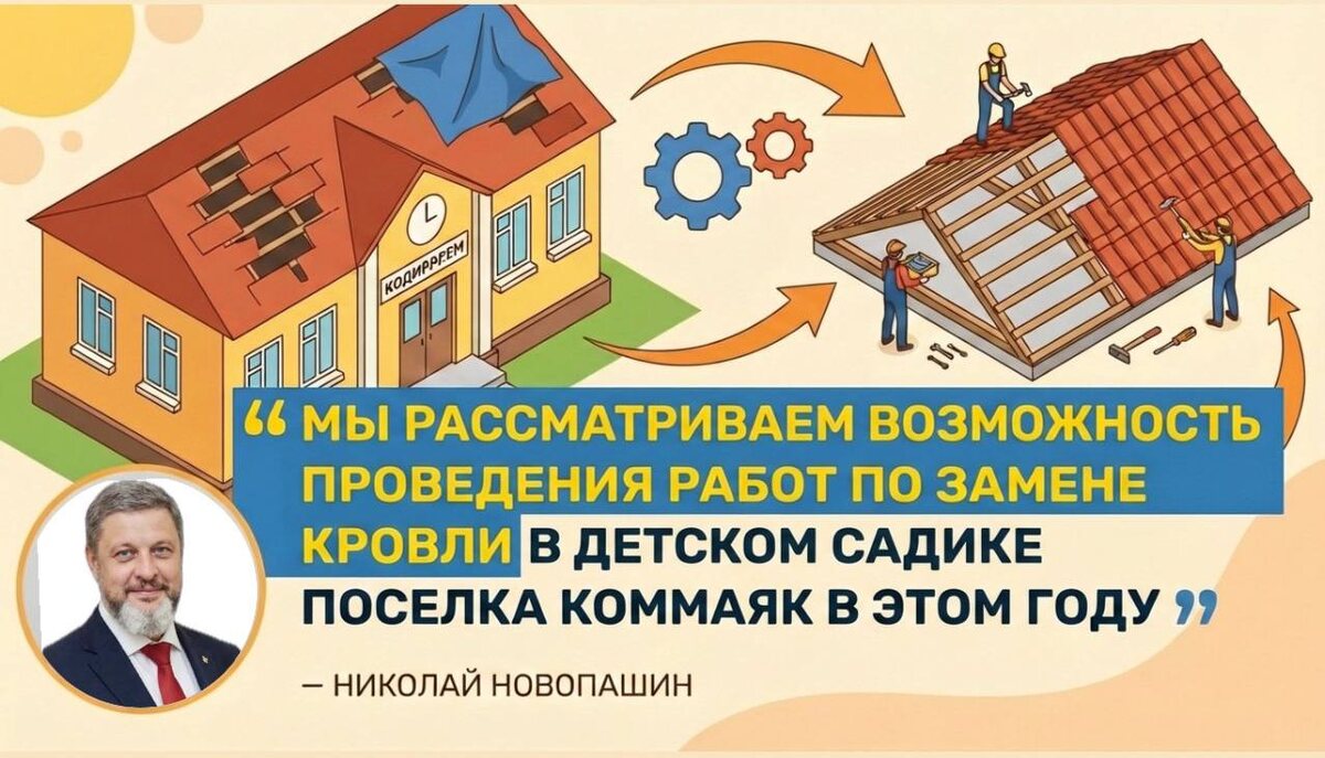 Глава Кировского округа Николай Новопашин рассказал, что в этом году запланирована замена кровли в нашем детском садике поселка Коммаяк
