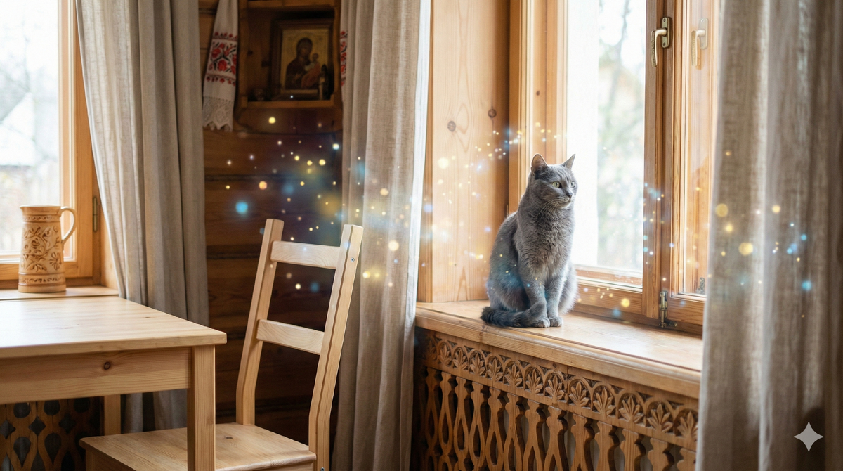 Наши предки никогда не смотрели на кошку как на обычное животное, которое живет рядом просто так. Это создание особенное, оно существует сразу в двух измерениях: в нашей теплой избе и где-то на самой границе с невидимым пространством. Кошка приносит в дом уют, но за мягким мурчанием всегда прячется связь с большой тайной и человеческой долей. Славяне верили, что зверек чувствует вещи, которые нам уловить не дано. Она выступала связным между людьми и силами, которые мы не видим. Она не просто живет с нами, она охраняет само жилье, закрывая его от темноты или недобрых гостей.