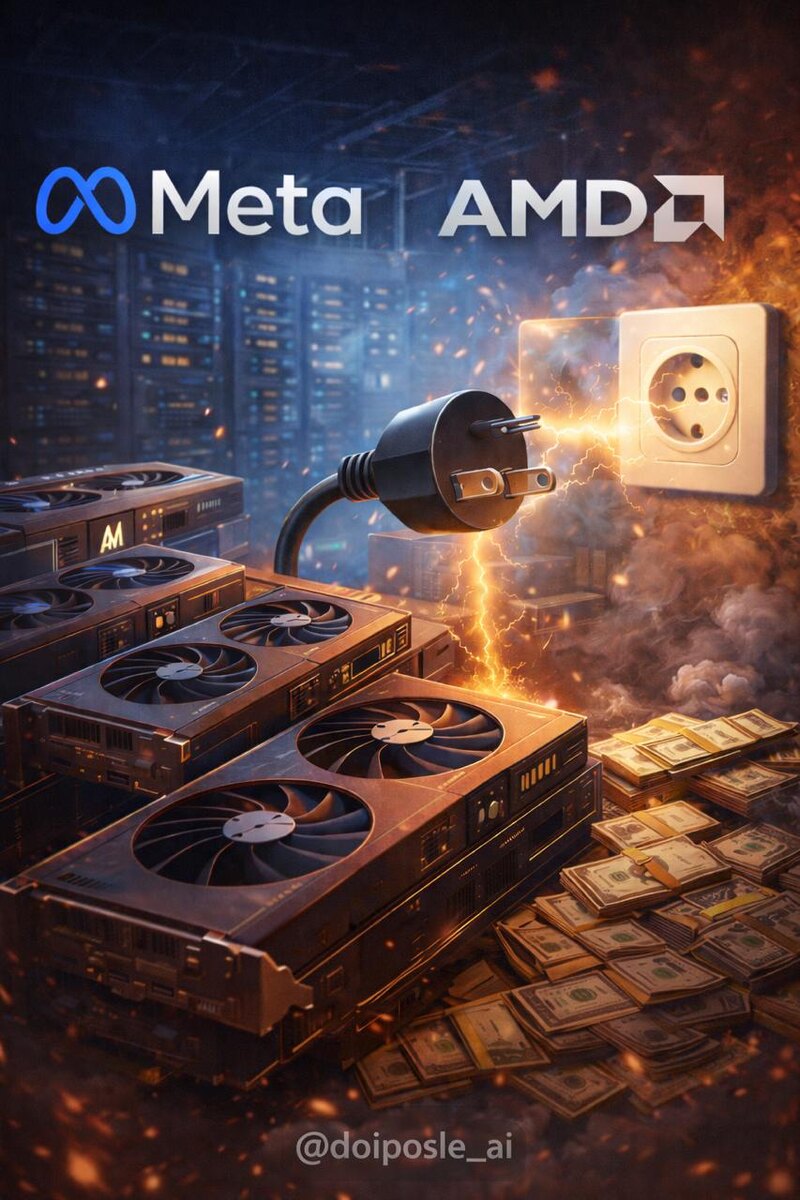 ⚡ 25 февраля Meta заключила сделку с AMD на $60 млрд - 5 лет чипов. Проблема: электросети не успевают. Дата-центры купили GPU, но не могут запустить - нет мощности. ⚡ ДО: Покупай чипы - масштабируйся. ⚡ ПОСЛЕ: Чипы есть, электричества нет. Разрешения ждут годами. Новое преимущество - мегаватты, не модели. Meta владеет 10% AMD. Когда чипы дефицит, покупатели диктуют условия. ИИ-гонка = энергогонка. Компании ищут электростанции. Лимит ИИ - киловатты, не таланты. #ИИ #Meta #AMD #энергетика #ДоИПосле