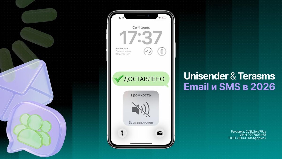 💸 Когда коммуникации строятся вокруг одного канала, любой сбой превращается в риск для продаж. Как сделать email и SMS единой рабочей системой — расскажут на закрытом эфире Unisender & TeraSMS🔥 >>РЕГИСТРАЦИЯ НА ЭФИР Реклама: 2VSb5wa79zy ИНН 9707003468 ООО «Юни Платформа»