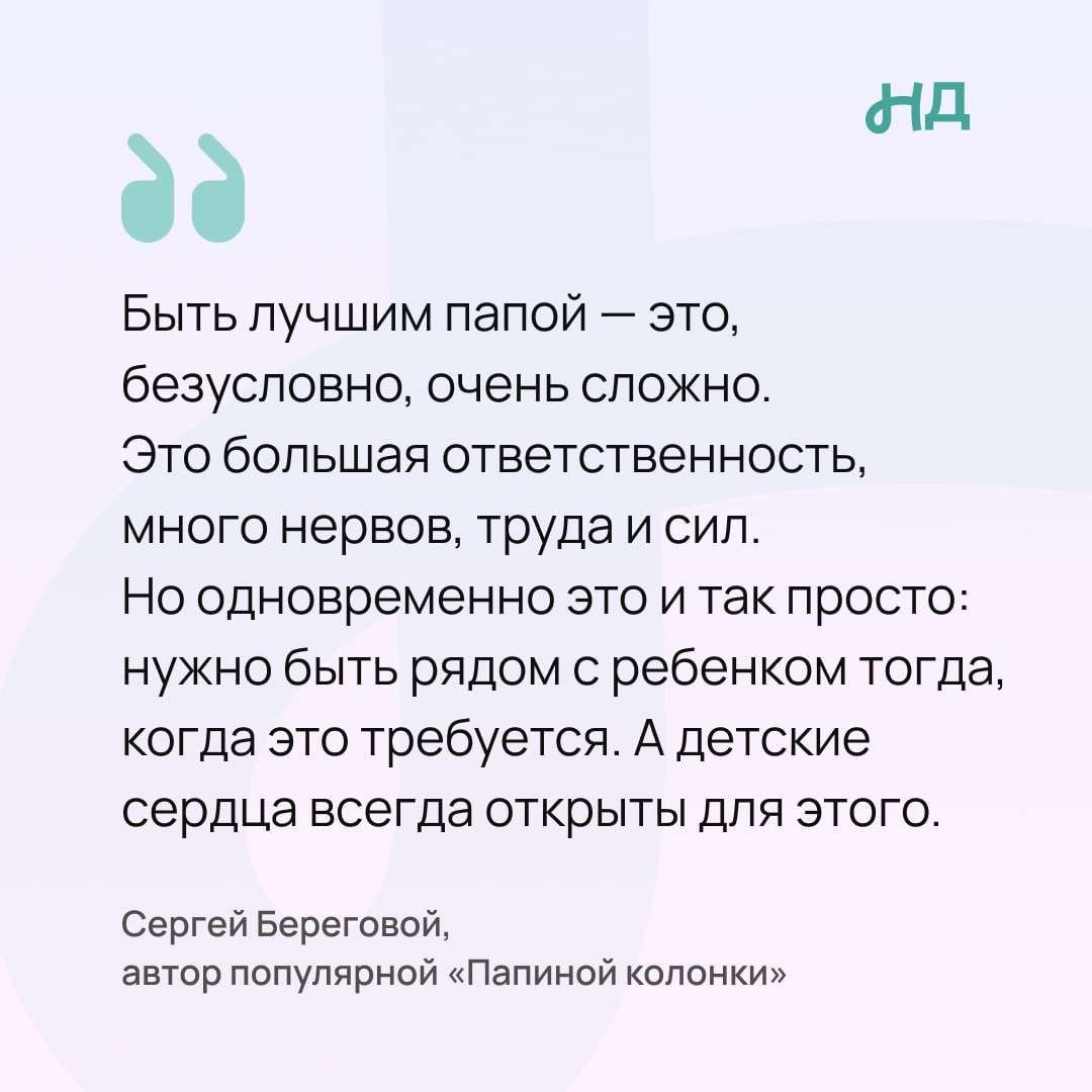 ❓Легко ли быть примером для своего ребенка? Автор «Папиной колонки» Сергей Береговой уверен: в отцовстве не бывает мелочей