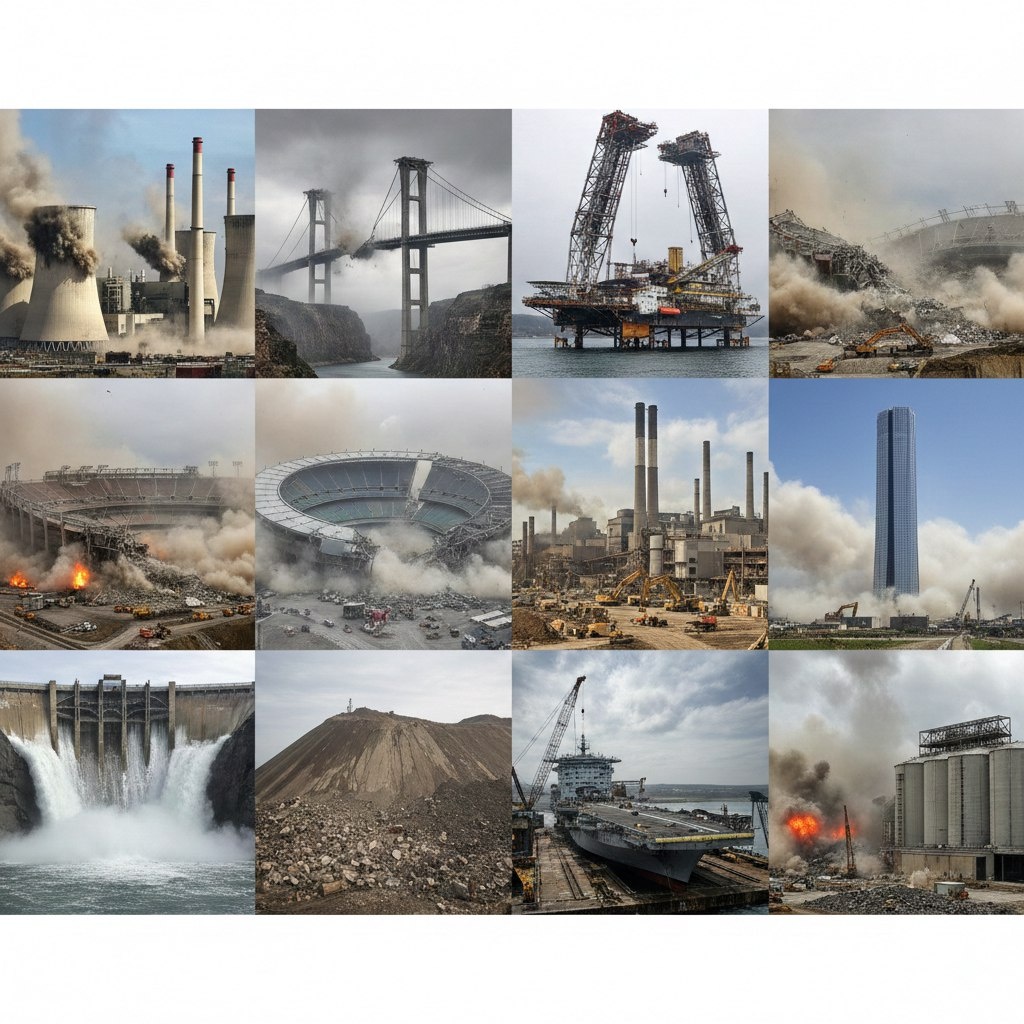 Знаете, что общего между атомным авианосцем, небоскрёбом и урановым заводом? Рано или поздно каждый из них отправляется под снос. Но если вы думаете, что это просто «пригнал экскаватор и развалил», вы глубоко ошибаетесь. Современный демонтаж — это ювелирная работа, где взрывчатку закладывают по миллиметру, а многотонные пролёты опускают на баржи с точностью до сантиметра.