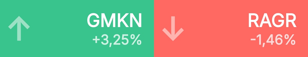 : Норильский • 162 ₽ • 3,25% ФосАгро • 6 898 ₽ • 3,09% Ростелеком • 65,68 ₽ • 2,61% Русал • 38,79 ₽ • 2,34% ВИ.ру • 79,57 ₽ • 1,90% Ростелеком • 63,30 ₽ • 1,52% РусГидро • 0,45 ₽ • 1,38% Алроса • 40,05 ₽ • 1,34% ПИК • 464 ₽ • 1,33% Эн+ • 481 ₽ • 1,32% 🔻 Топ-10 лидеров падения среди крупнейших акций: Группа Рус • 120 ₽ • -1,46% ЕвроТранс • 135 ₽ • -1,17% Медикал Гр • 1 495 ₽ • -0,79% ЭсЭфАй • 910 ₽ • -0,70% Озон • 4 756 ₽ • -0,57% VK • 313 ₽ • -0,54% ЭЛ5-Энерго • 0,50 ₽ • -0,51% Интер РАО • 3,31 ₽ • -0,44% Фикс Прайс • 0,57 ₽ • -0,42% Ренессанс • 95,56 ₽ • -0,35%